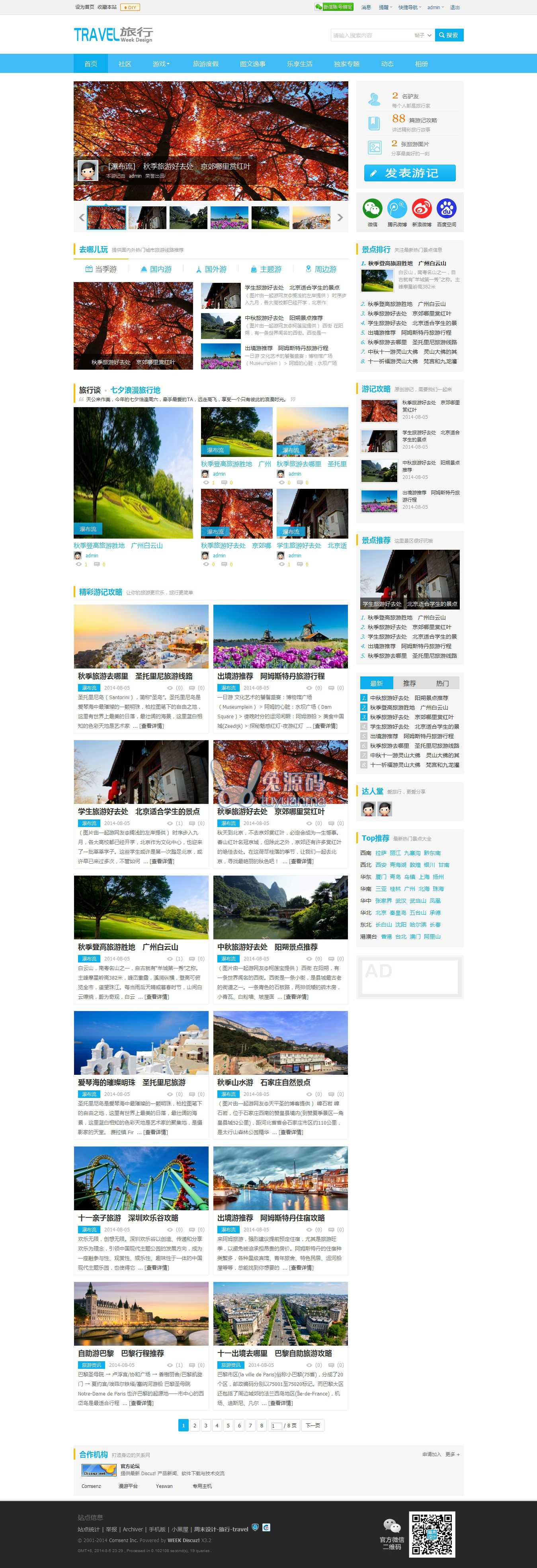 1、安装完成后进入[后台]-[界面]-[风格管理], 选择Travel_旅行[week_travel] 设置为默认风格;