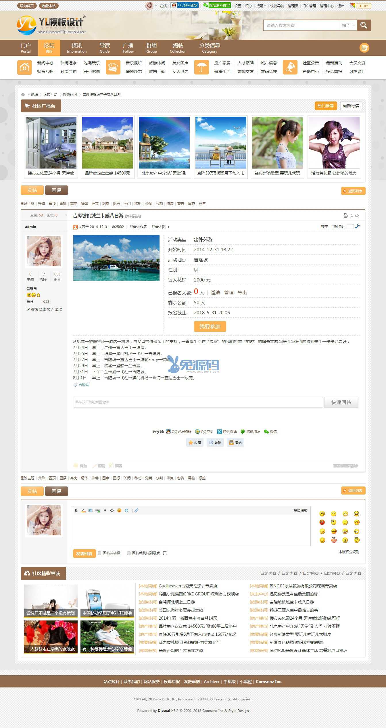 7.模板增加列表及内容页广播台及精彩导读,分类信息,社区活动,打折优惠等让您的网站展示更多的内容,增强页面浏览粘性;