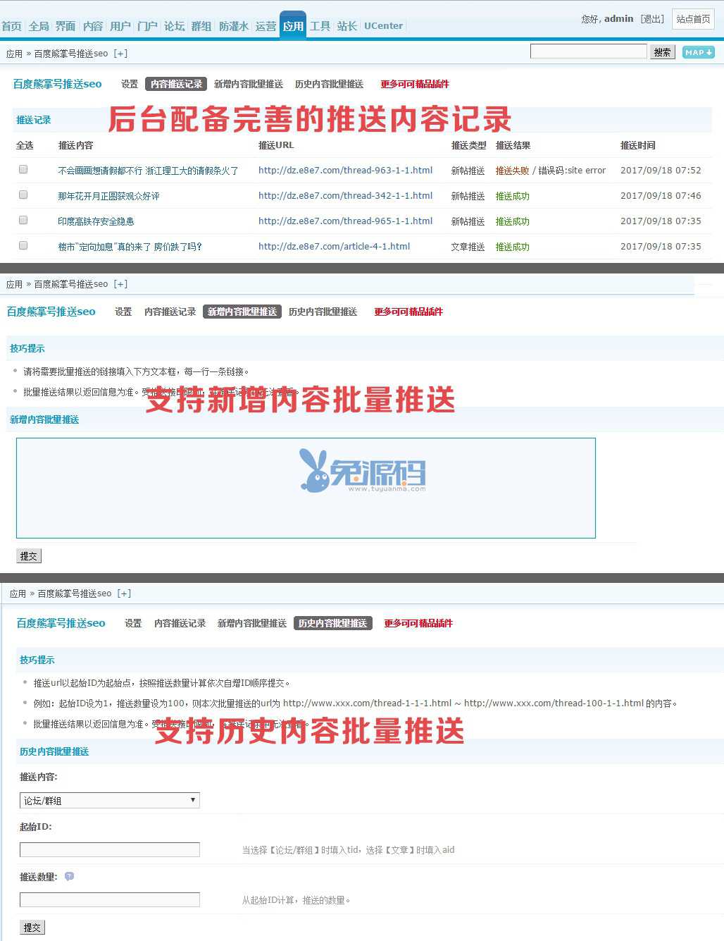 门户推送,论坛推送后台均设置有单独开关,方便控制推送位置。